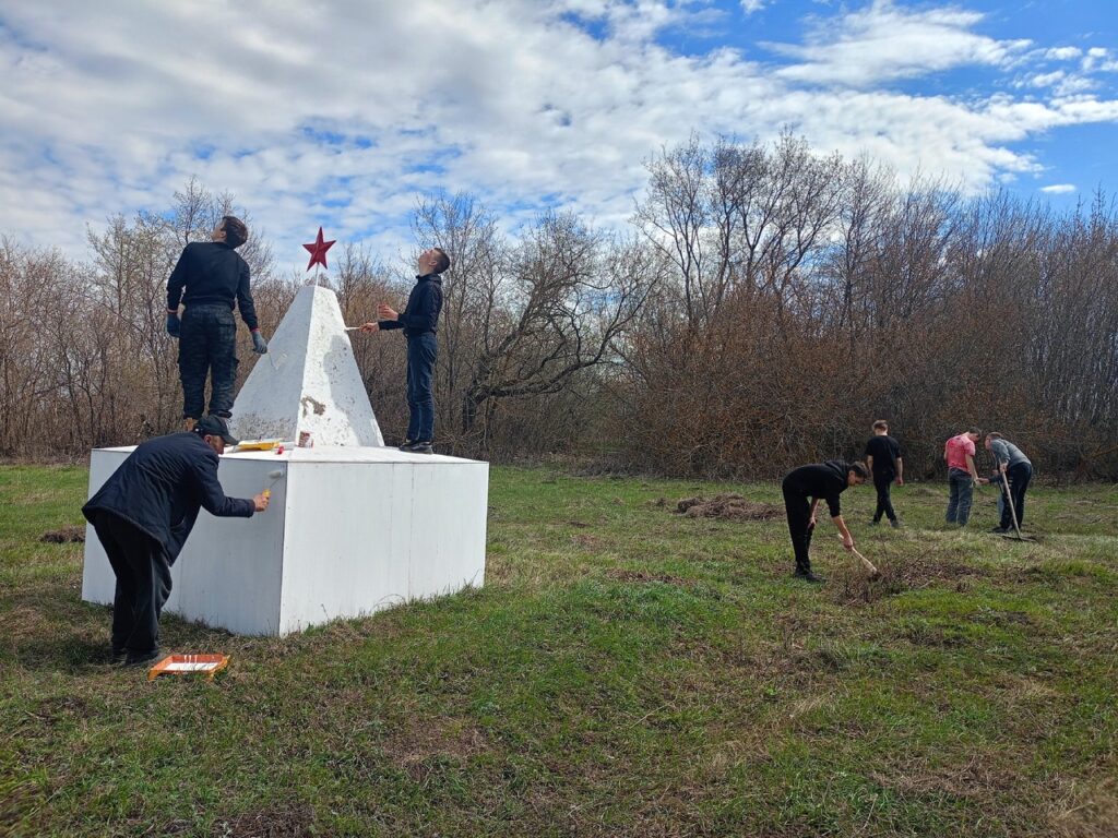 Покрасили памятник воинам — революционерам, привёли в порядок территорию около памятника.