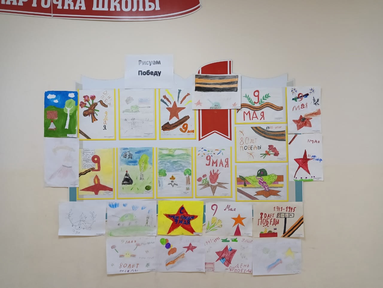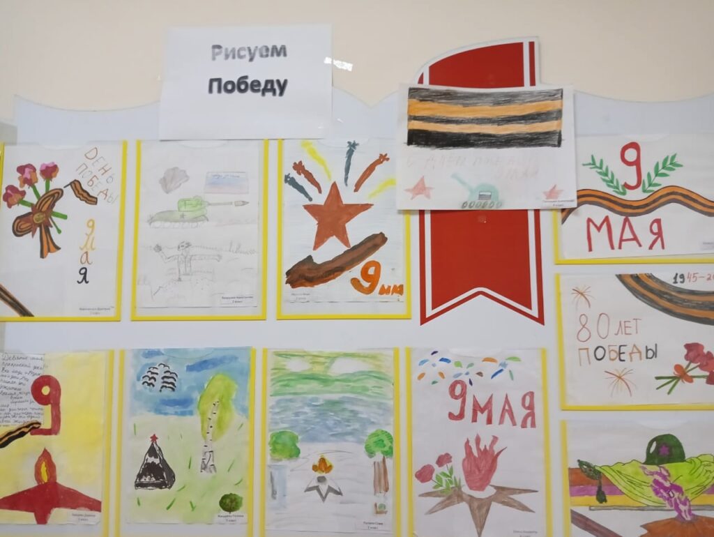 В рамках мероприятий Дней единых действий, приуроченных к 80- летию Великой Победы. Обучающиеся начальной школы приняли участие в выставке рисунков «Рисуем Победу»